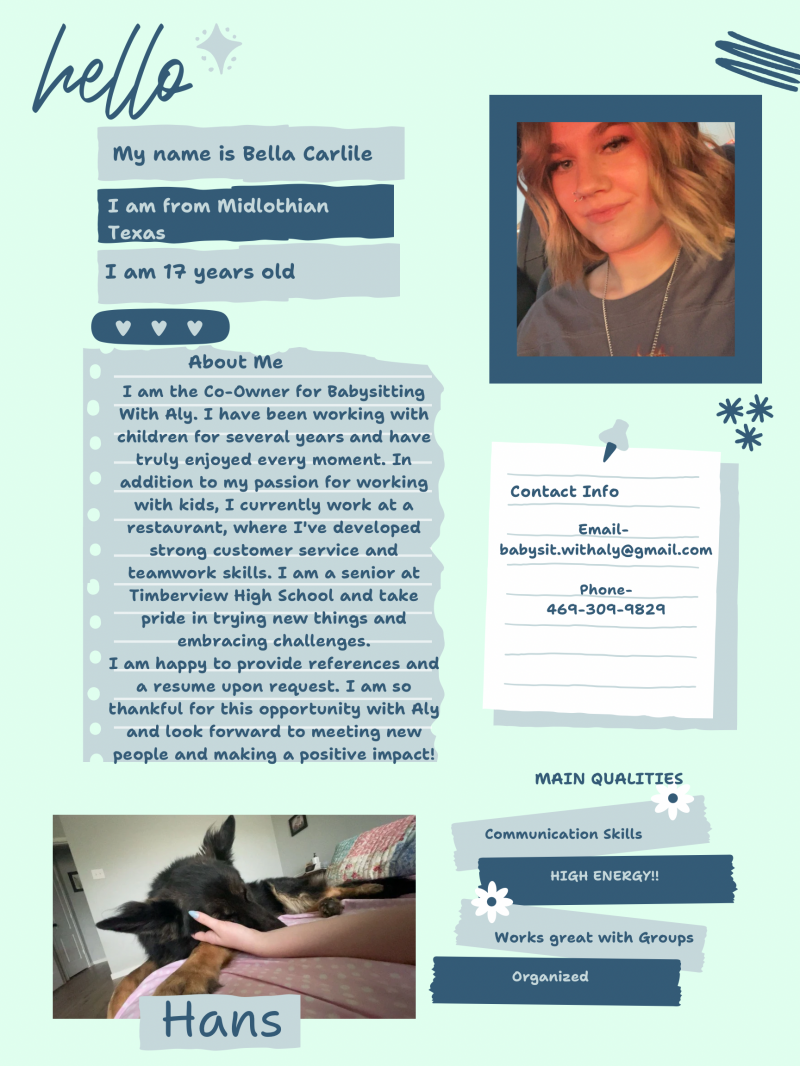 Aly has been regularly watching my son (now 2) since he was 4 months old, and she has been excellent. She is responsible , reliable, and lots of fun!